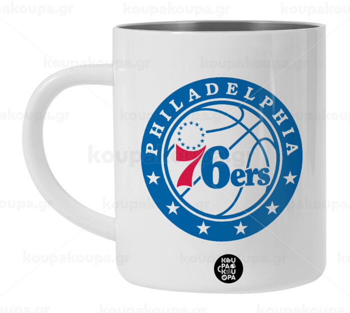 Philadelphia 76ers, Λευκή Ανοξείδωτη Μεταλλική Κούπα 450ml - Διπλού Τοιχώματος