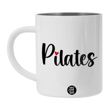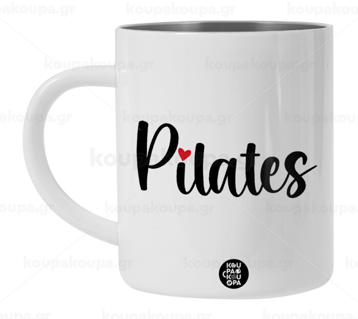 Pilates love, Λευκή Ανοξείδωτη Μεταλλική Κούπα 450ml - Διπλού Τοιχώματος