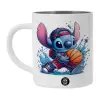 Stitch Basketball, Λευκή Ανοξείδωτη Μεταλλική Κούπα 450ml - Διπλού Τοιχώματος