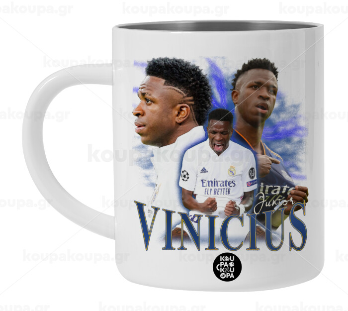 Vinicius Junior, Λευκή Ανοξείδωτη Μεταλλική Κούπα 450ml - Διπλού Τοιχώματος