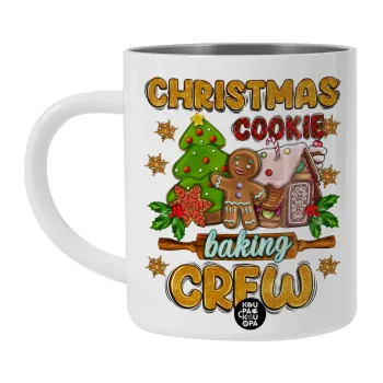 Christmas Cookie Baking Crew, Λευκή Ανοξείδωτη Μεταλλική Κούπα 450ml - Διπλού Τοιχώματος