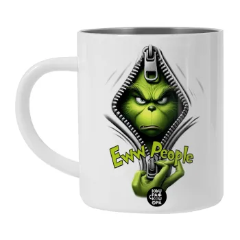 Grinch, eww people, Λευκή Ανοξείδωτη Μεταλλική Κούπα 450ml - Διπλού Τοιχώματος