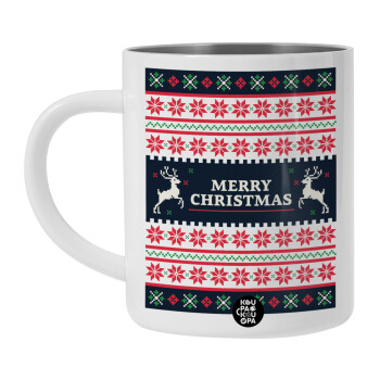 Merry Christmas Vintage, Λευκή Ανοξείδωτη Μεταλλική Κούπα 450ml - Διπλού Τοιχώματος