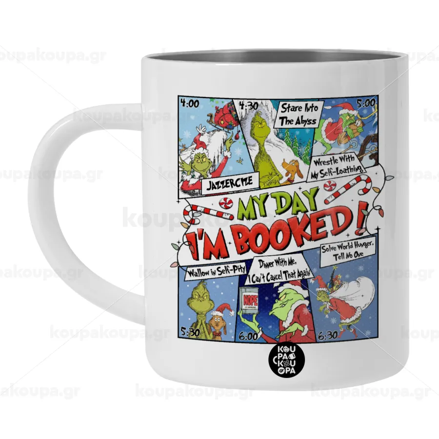 My Day Grinch, Λευκή Ανοξείδωτη Μεταλλική Κούπα 450ml - Διπλού Τοιχώματος