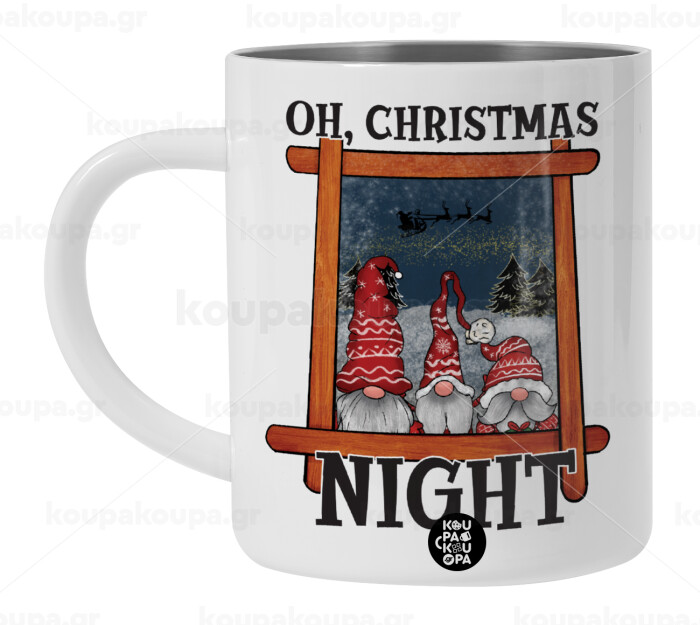Oh Christmas Night, Λευκή Ανοξείδωτη Μεταλλική Κούπα 450ml - Διπλού Τοιχώματος