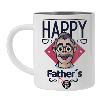Για την γιορτή του μπαμπά!, Λευκή Ανοξείδωτη Μεταλλική Κούπα 450ml - Διπλού Τοιχώματος