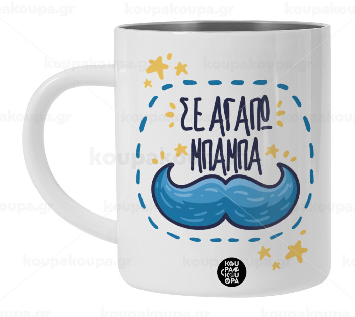 Σε αγαπώ μπαμπά!!!, Λευκή Ανοξείδωτη Μεταλλική Κούπα 450ml - Διπλού Τοιχώματος