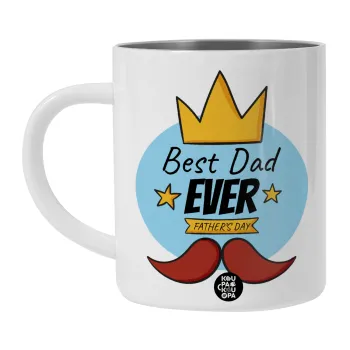 King, Best dad ever, Λευκή Ανοξείδωτη Μεταλλική Κούπα 450ml - Διπλού Τοιχώματος