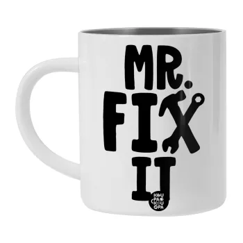 Mr fix it, Λευκή Ανοξείδωτη Μεταλλική Κούπα 450ml - Διπλού Τοιχώματος