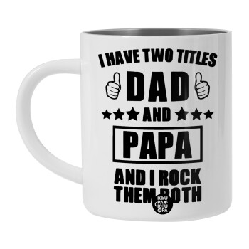 I have two title, DAD & PAPA, Λευκή Ανοξείδωτη Μεταλλική Κούπα 450ml - Διπλού Τοιχώματος