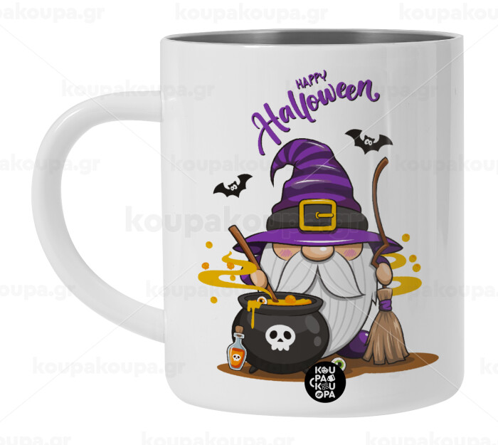 Happy Halloween (Χαλοουίν), Λευκή Ανοξείδωτη Μεταλλική Κούπα 450ml - Διπλού Τοιχώματος