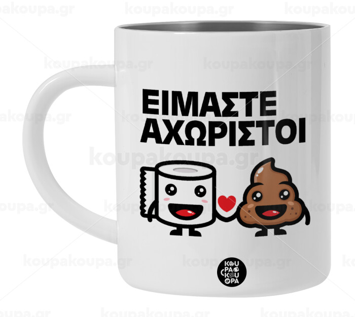 Είμαστε αχώριστοι, Λευκή Ανοξείδωτη Μεταλλική Κούπα 450ml - Διπλού Τοιχώματος