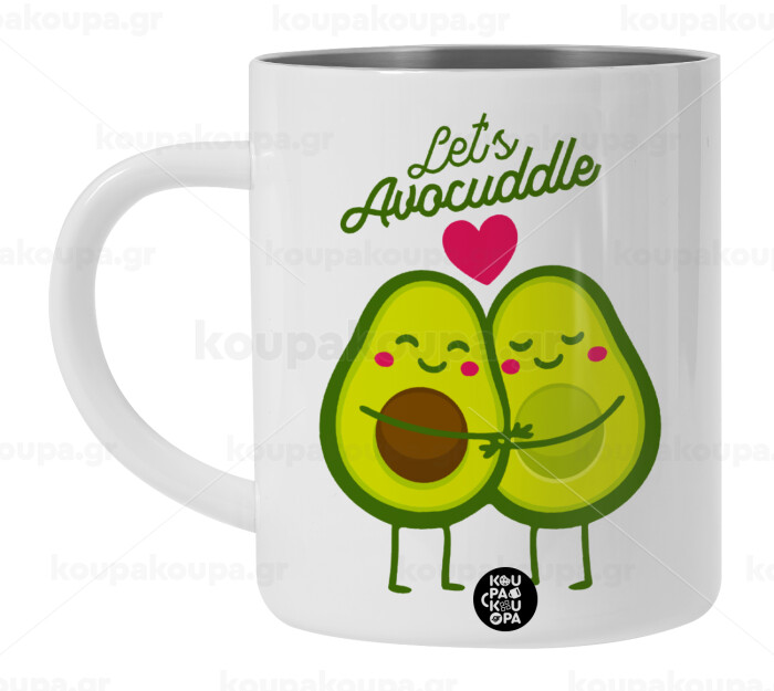 Let's avocuddle, Λευκή Ανοξείδωτη Μεταλλική Κούπα 450ml - Διπλού Τοιχώματος