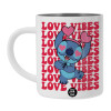 Lilo & Stitch Love vibes, Λευκή Ανοξείδωτη Μεταλλική Κούπα 450ml - Διπλού Τοιχώματος