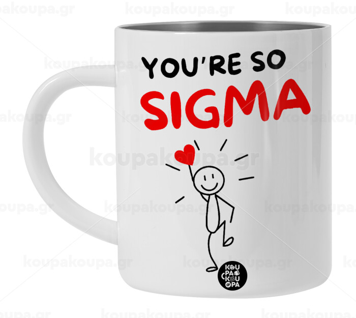 Sigma Valentine's Day , Λευκή Ανοξείδωτη Μεταλλική Κούπα 450ml - Διπλού Τοιχώματος