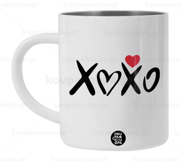 xoxo, Λευκή Ανοξείδωτη Μεταλλική Κούπα 450ml - Διπλού Τοιχώματος