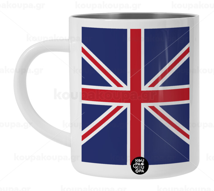Σημαία Αγγλίας UK, Λευκή Ανοξείδωτη Μεταλλική Κούπα 450ml - Διπλού Τοιχώματος