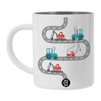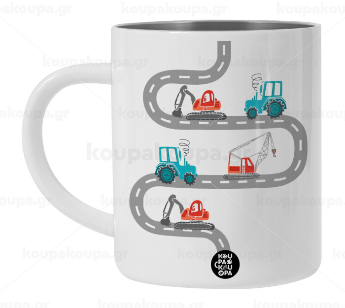 Αμαξάκια στον δρόμο, Λευκή Ανοξείδωτη Μεταλλική Κούπα 450ml - Διπλού Τοιχώματος