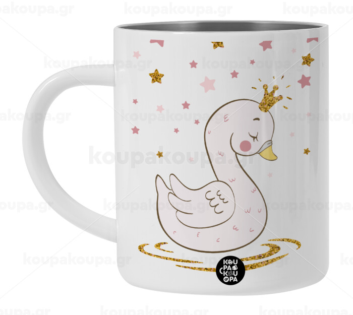 Κύκνος με στέμα, Λευκή Ανοξείδωτη Μεταλλική Κούπα 450ml - Διπλού Τοιχώματος