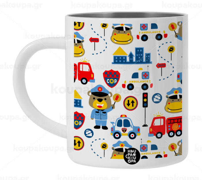 Rescue team cartoon, Λευκή Ανοξείδωτη Μεταλλική Κούπα 450ml - Διπλού Τοιχώματος