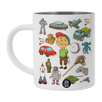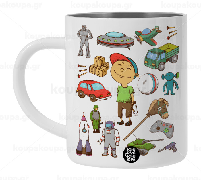 Toys Boy, Λευκή Ανοξείδωτη Μεταλλική Κούπα 450ml - Διπλού Τοιχώματος