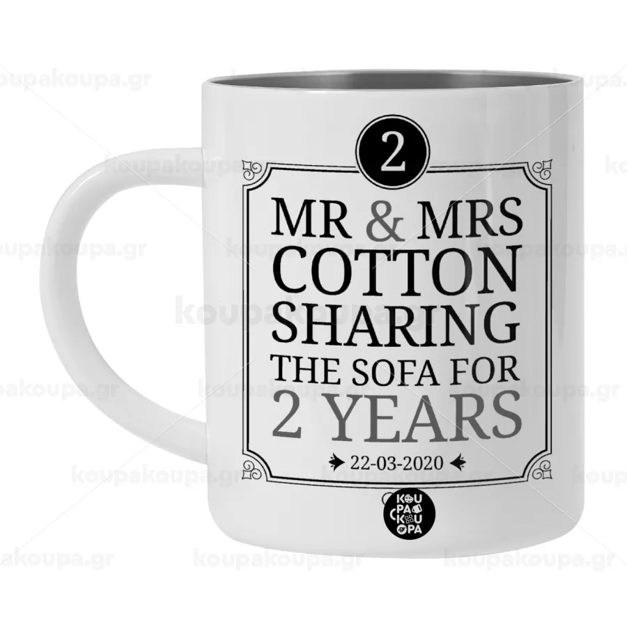 Mr & Mrs Sharing the sofa, Λευκή Ανοξείδωτη Μεταλλική Κούπα 450ml - Διπλού Τοιχώματος