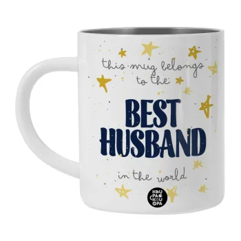This mug belongs to the BEST HUSBAND in the world!, Λευκή Ανοξείδωτη Μεταλλική Κούπα 450ml - Διπλού Τοιχώματος