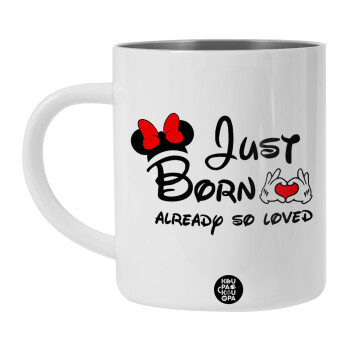 Just born already so loved, Λευκή Ανοξείδωτη Μεταλλική Κούπα 450ml - Διπλού Τοιχώματος