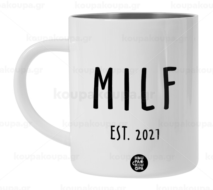 MILF, Λευκή Ανοξείδωτη Μεταλλική Κούπα 450ml - Διπλού Τοιχώματος
