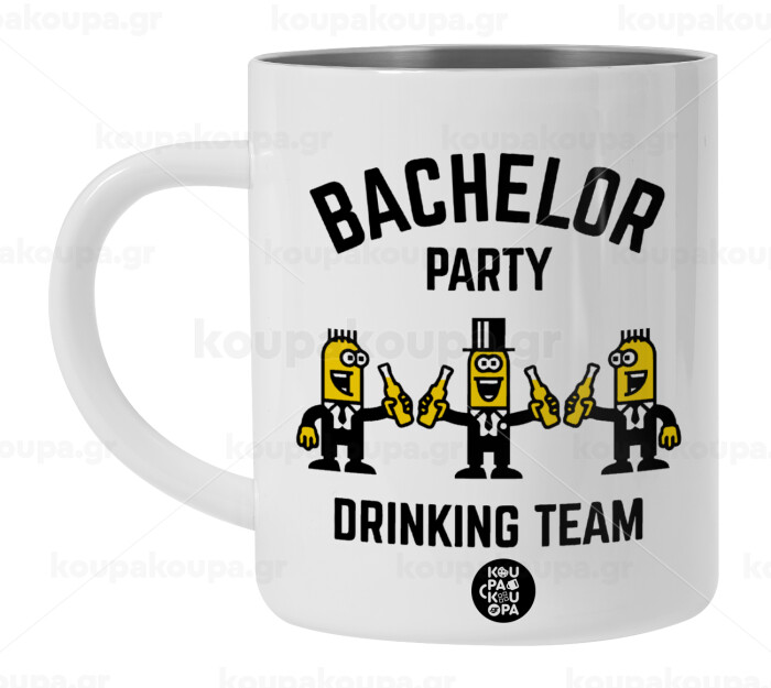 Bachelor Party Drinking Team, Λευκή Ανοξείδωτη Μεταλλική Κούπα 450ml - Διπλού Τοιχώματος