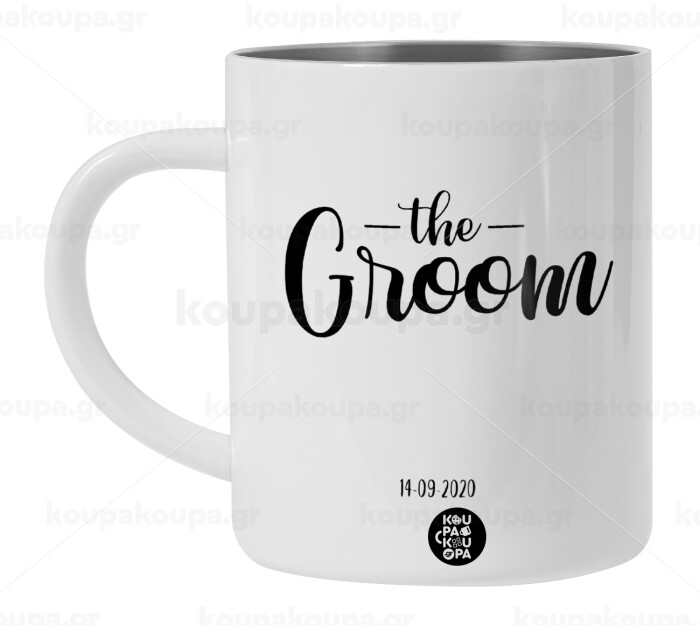 Groom & Bride (Groom), Λευκή Ανοξείδωτη Μεταλλική Κούπα 450ml - Διπλού Τοιχώματος