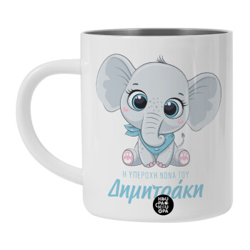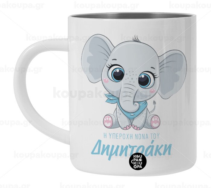 Η νονά μου, ελεφαντάκι γαλάζιο, Λευκή Ανοξείδωτη Μεταλλική Κούπα 450ml - Διπλού Τοιχώματος