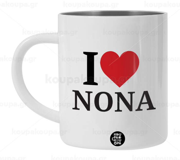 I Love ΝΟΝΑ, Λευκή Ανοξείδωτη Μεταλλική Κούπα 450ml - Διπλού Τοιχώματος