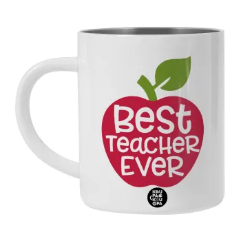 best teacher ever, apple!, Λευκή Ανοξείδωτη Μεταλλική Κούπα 450ml - Διπλού Τοιχώματος