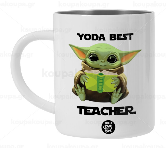 Yoda Best Teacher, Λευκή Ανοξείδωτη Μεταλλική Κούπα 450ml - Διπλού Τοιχώματος