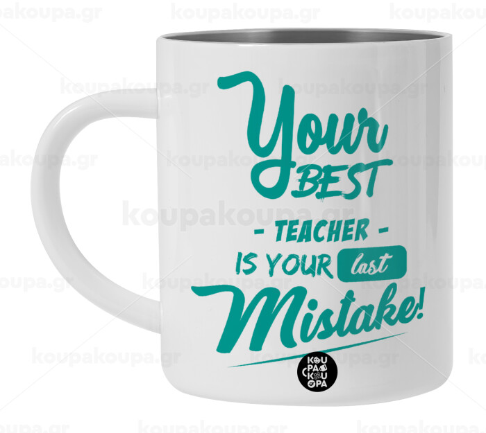 Your best teacher is your last mistake, Λευκή Ανοξείδωτη Μεταλλική Κούπα 450ml - Διπλού Τοιχώματος