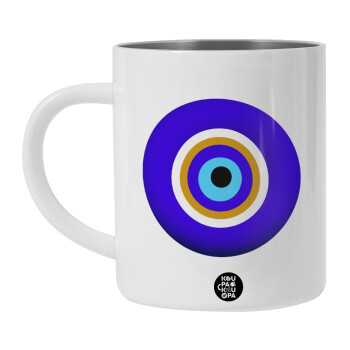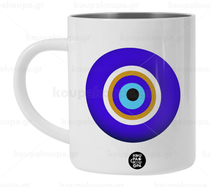 Το μάτι, Λευκή Ανοξείδωτη Μεταλλική Κούπα 450ml - Διπλού Τοιχώματος