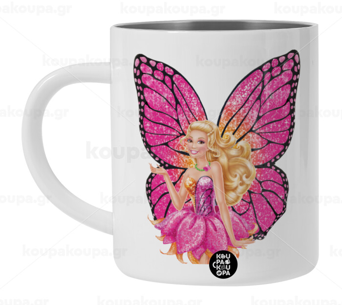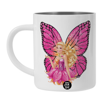 Barbie Νεράιδα, Λευκή Ανοξείδωτη Μεταλλική Κούπα 450ml - Διπλού Τοιχώματος