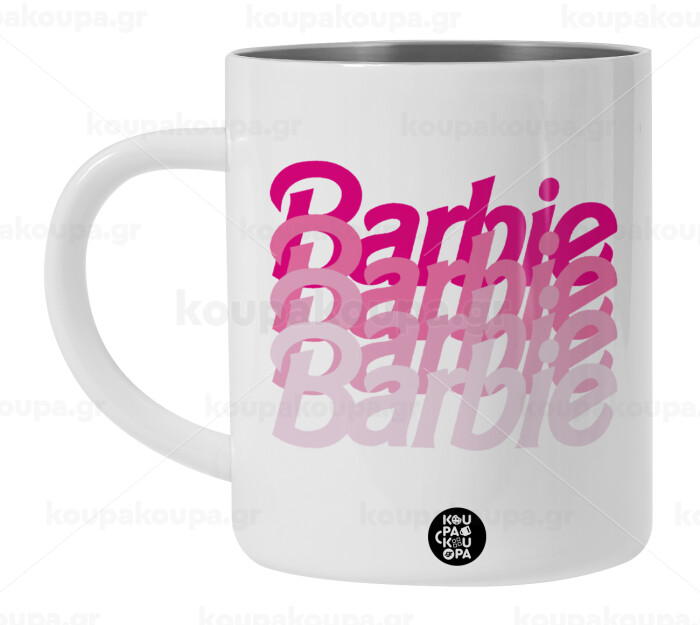 Barbie repeat, Λευκή Ανοξείδωτη Μεταλλική Κούπα 450ml - Διπλού Τοιχώματος