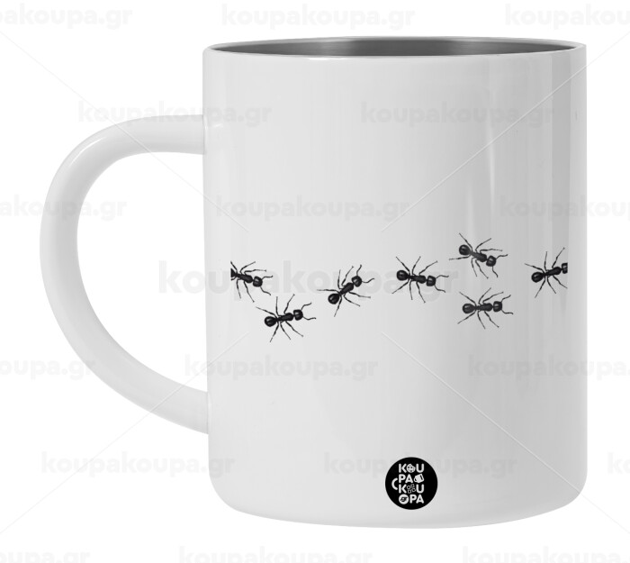Μυρμήγκια, Λευκή Ανοξείδωτη Μεταλλική Κούπα 450ml - Διπλού Τοιχώματος