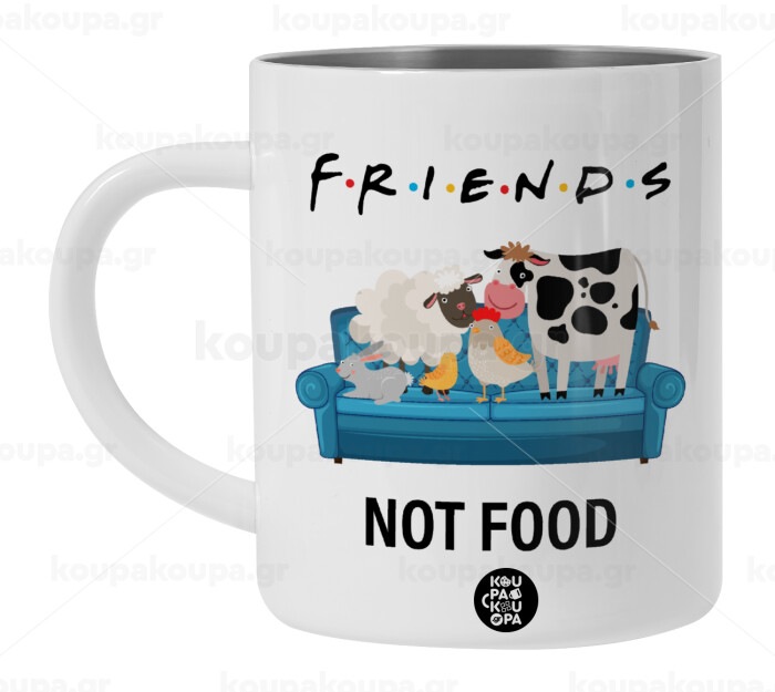 friends, not food, Λευκή Ανοξείδωτη Μεταλλική Κούπα 450ml - Διπλού Τοιχώματος