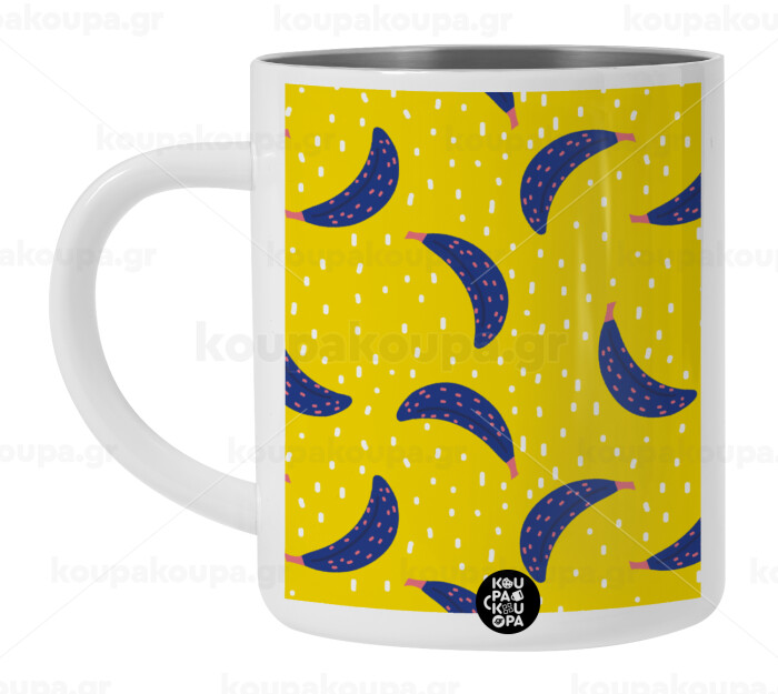 Yellow seamless with blue bananas, Λευκή Ανοξείδωτη Μεταλλική Κούπα 450ml - Διπλού Τοιχώματος
