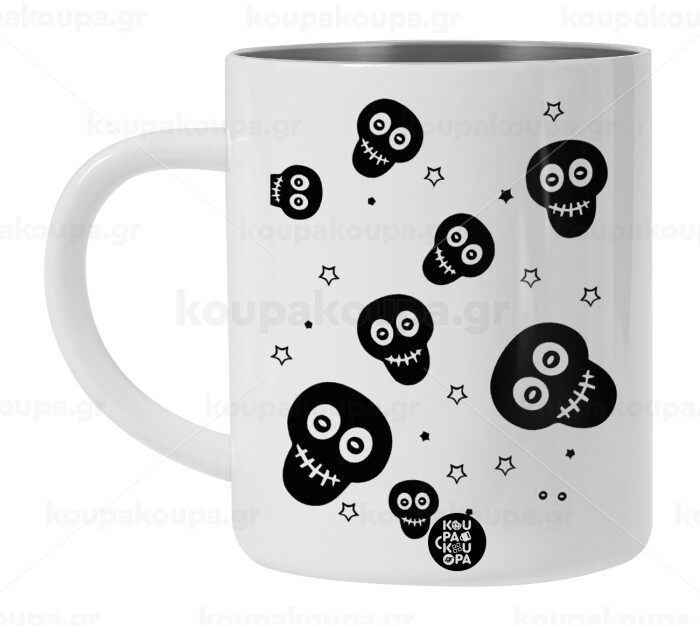 Skull avatar, Λευκή Ανοξείδωτη Μεταλλική Κούπα 450ml - Διπλού Τοιχώματος