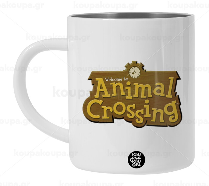 Animal Crossing, Λευκή Ανοξείδωτη Μεταλλική Κούπα 450ml - Διπλού Τοιχώματος