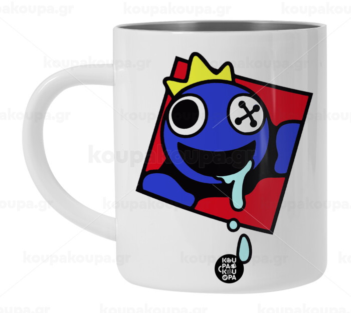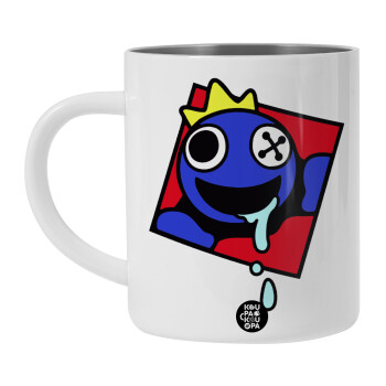 Blue, Rainbow friends, Λευκή Ανοξείδωτη Μεταλλική Κούπα 450ml - Διπλού Τοιχώματος