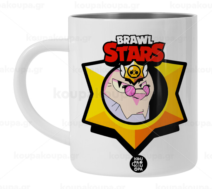 Brawl Stars Byron, Λευκή Ανοξείδωτη Μεταλλική Κούπα 450ml - Διπλού Τοιχώματος