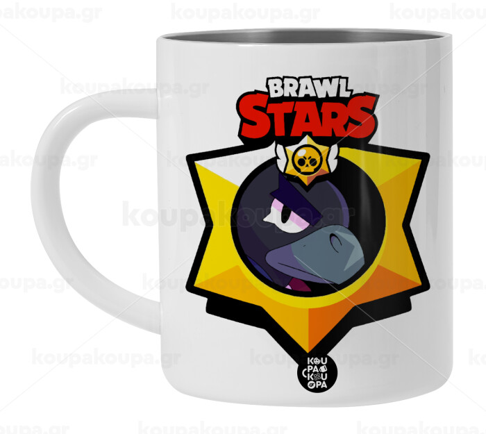 Brawl Stars Crow, Λευκή Ανοξείδωτη Μεταλλική Κούπα 450ml - Διπλού Τοιχώματος