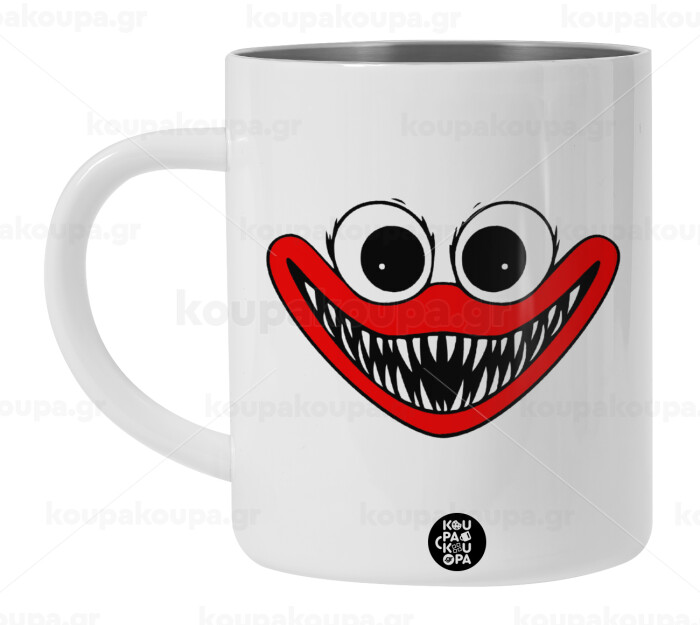 Huggy wuggy, Λευκή Ανοξείδωτη Μεταλλική Κούπα 450ml - Διπλού Τοιχώματος