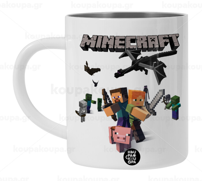 Minecraft Alex, Λευκή Ανοξείδωτη Μεταλλική Κούπα 450ml - Διπλού Τοιχώματος