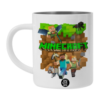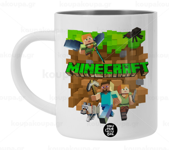 Minecraft characters, Λευκή Ανοξείδωτη Μεταλλική Κούπα 450ml - Διπλού Τοιχώματος